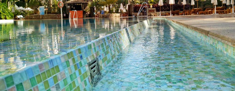 Der 1000 m² Pool mit Insel wurde in nur 20 Tagen vollsaniert und neu designed.