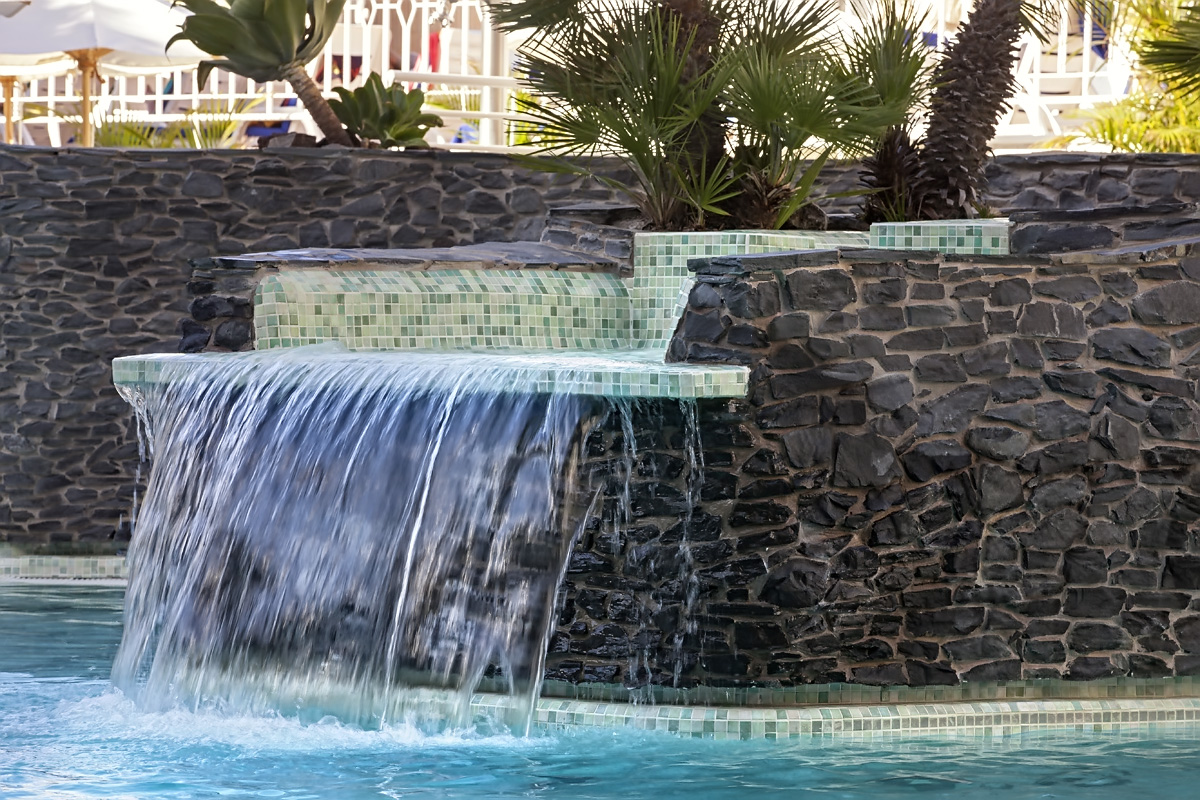 Dabei wurden auch die Wasserfallanlage, die Duschen und die Außenanlagen aufwendig durch verschiedene Verlegetechniken mit Natursteinen verschönert.